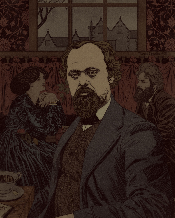 Portrait of Dante Gabriel Rossetti for The Who The What and The When, a book about the secret sidekicks of history. The illustration is based on Rossetti’s painting of Jane from 1868 "Jane Morris (The Blue Silk Dress)." Client: Chronicle Books & Also Design