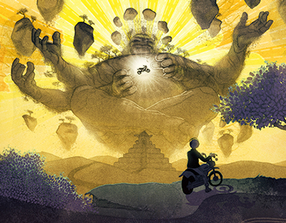 God of dirt illustration for an article about how riding a dirt bike can help improve safe motorcycle riding on the road.