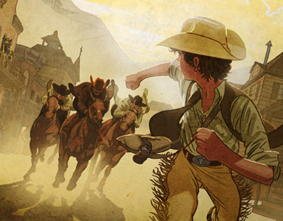 Book jacket illustrations for a Wild Western mystery trilogy about the adventures of a young detective, PK Pinkerton.