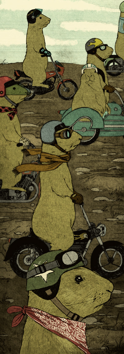 Illustration for an article about road-awareness. The author mentions prairie dogs in the article as a model of alertness. Art Director: Christina Pendon
